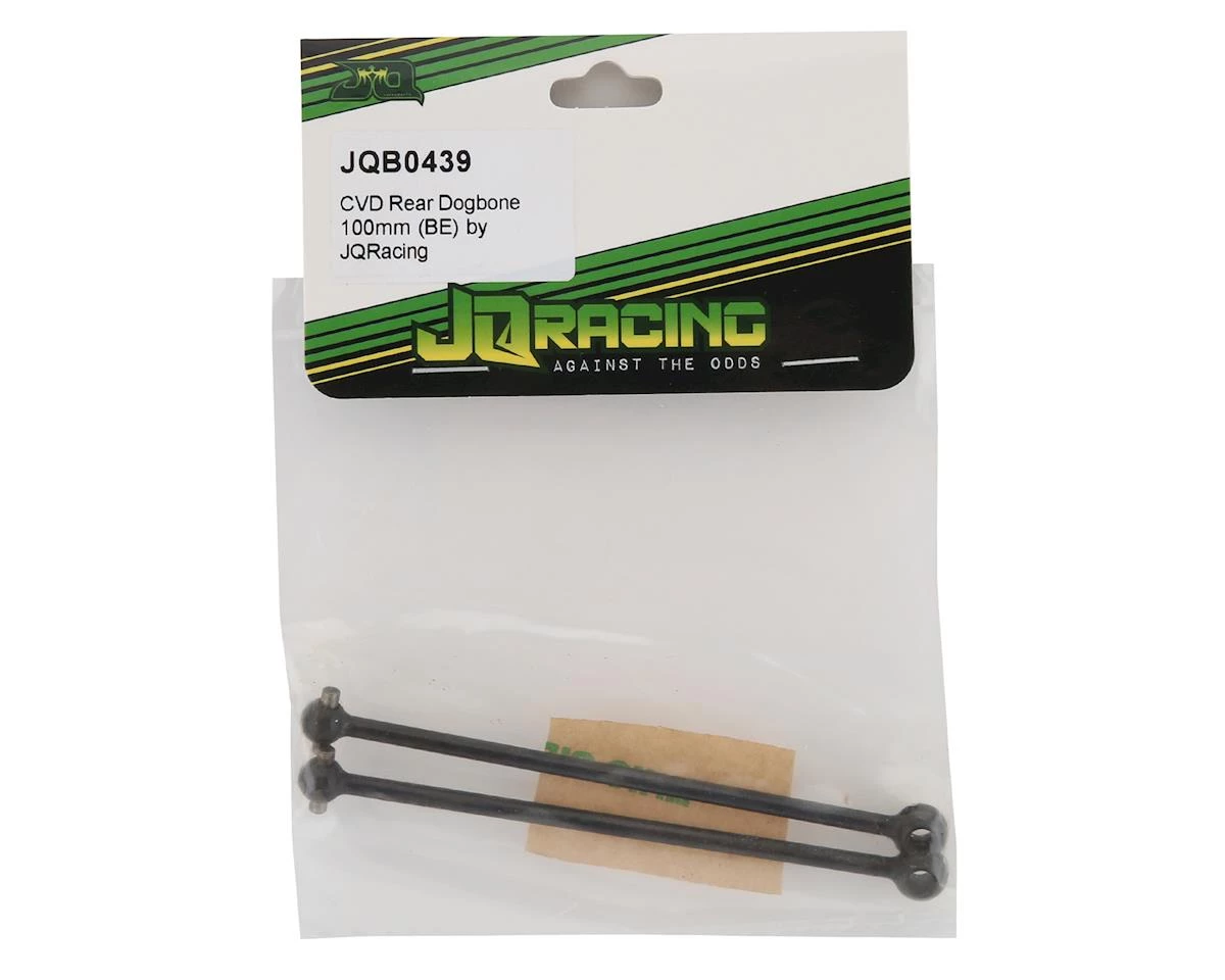This is a pack of two replacement JQRacing 100mm Rear CVD Dogbones, intended for use with the JQRacing “THE Car” Black Edition Spec-Q 1/8 Off-Road Nitro Buggy. These are compatible with Black Edition models equipped with the 100mm Rear CVDs (JQP-JQB0438).