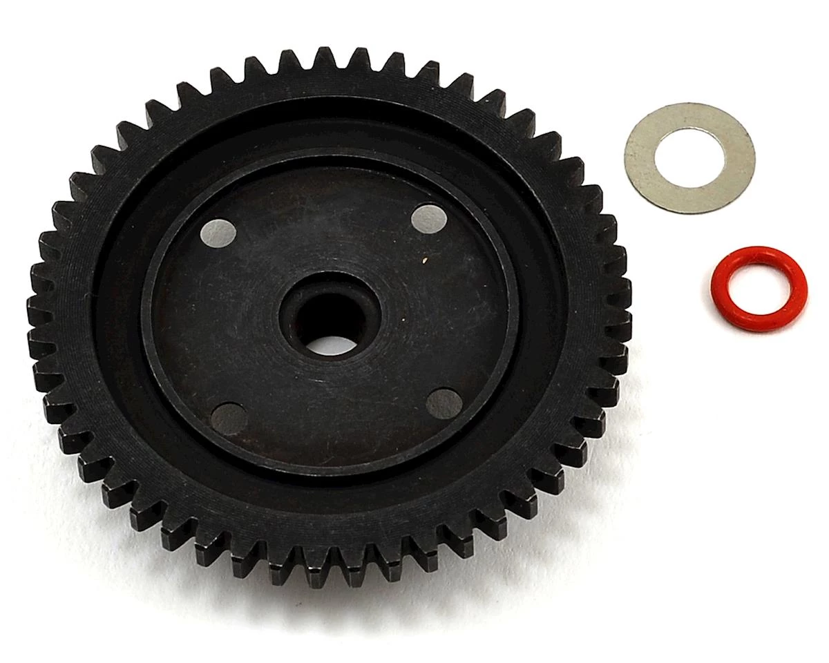 This is a replacement JQ Products 49 Tooth Main Gear. This gear is part of the next evolution of JQ gearing, now called “THE Even Smoother Gearing Set” (JQP-S-0036). This gearing has even smoother and more controllable acceleration, less wheel spin and better overall throttle control. A must have for all racers! Developed to help drivers apply the power of their engine in the efficient way possible.