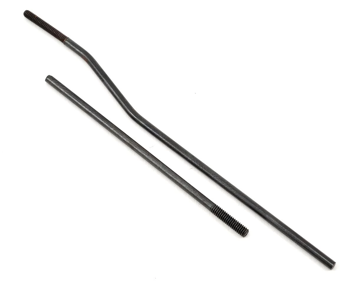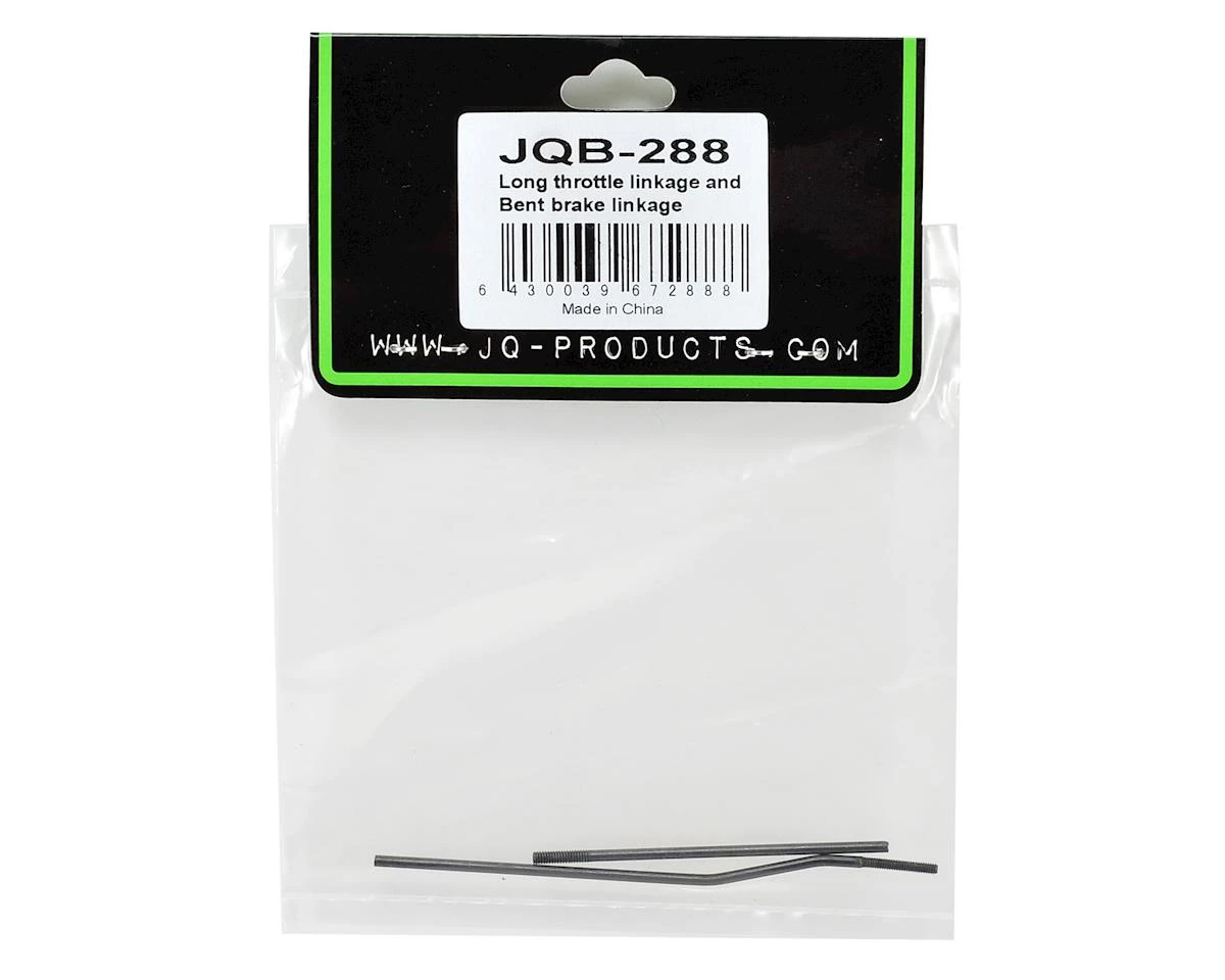 This is a replacement JQ Products Long Throttle & Bent Brake Linkage Rod Set. These are used with THE Car when equipped with the Wide Chassis. Package includes one long throttle linkage rod, and one bent brake linkage rod.