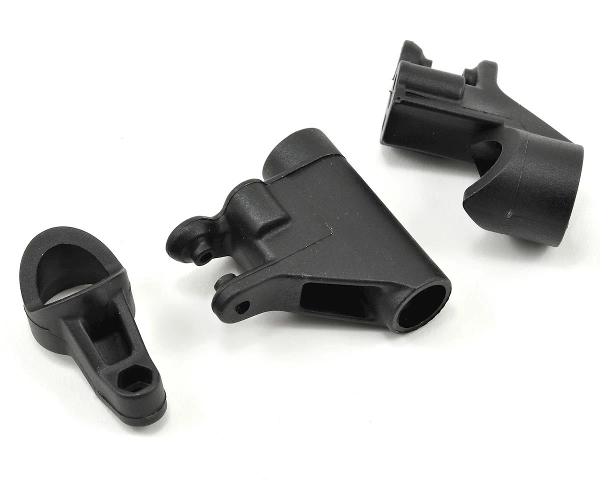 This is a replacement JQ Products Plastic Steering Part Set, and is intended for use with JQ Products THE Car. This package includes both upper and lower plastic halves of the servosaver, as well as the solid upright that is installed on the oppositeside of the steering rack. The servo saver is the part of the steeringsystem that connects the ackerman plate to the steering servoturnbuckle. This part is designed so that in the event of a front endimpact, the two piece portion of the servo saver upright will act as thebuffer point, reducing the possibility of damage to the steering servo.