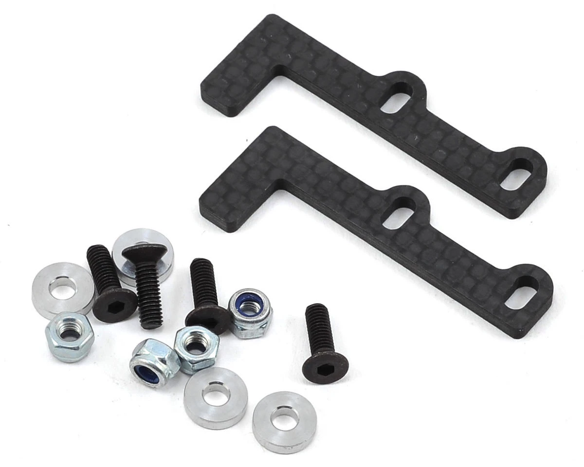 This is an optional PSM 3mm TC6.2 Carbon Battery Centering Brace Set. This battery brace set is made from glossy 2.5mm Carbon Fiber, and will help keep the battery secure. Includes installation hardware.