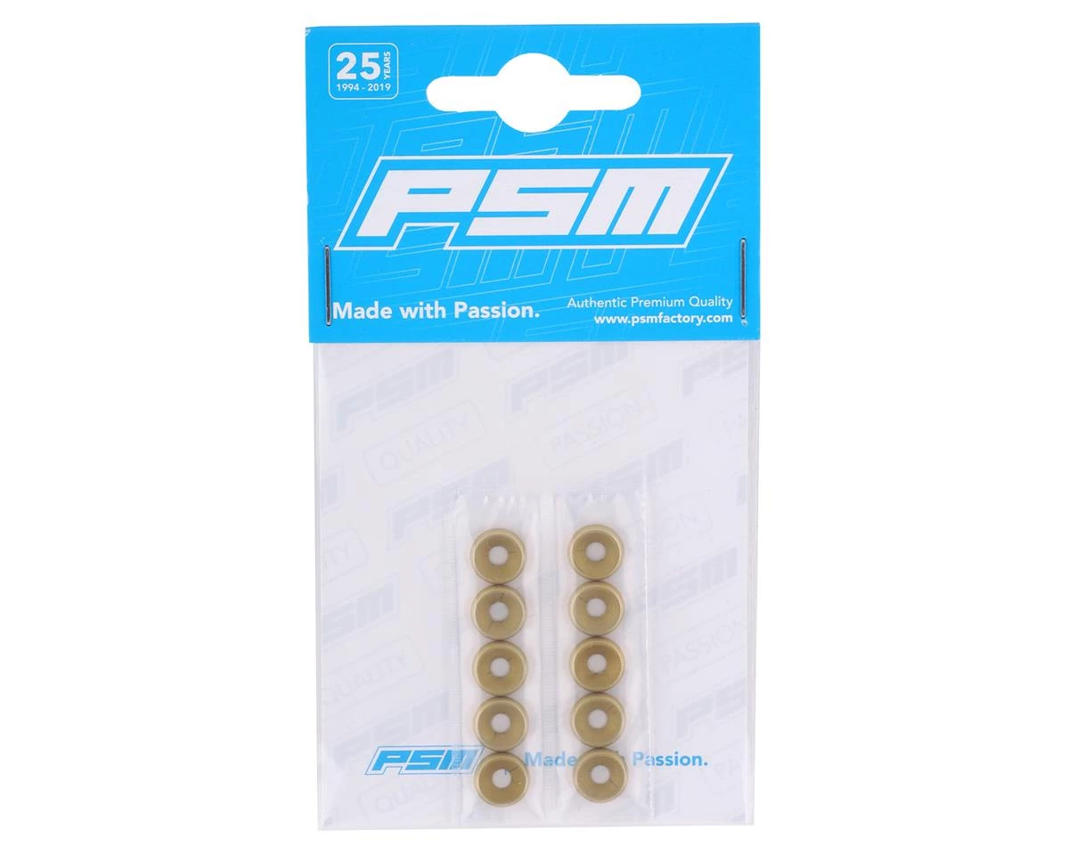 PSM 3mm Aluminum Countersunk Washers. These optional countersunk washers are a great way to add a strength and style to your RC car or truck. Designed to work with flat head machine screws (sold separately) for a strong and clean finish. Package includes ten countersunk washers.