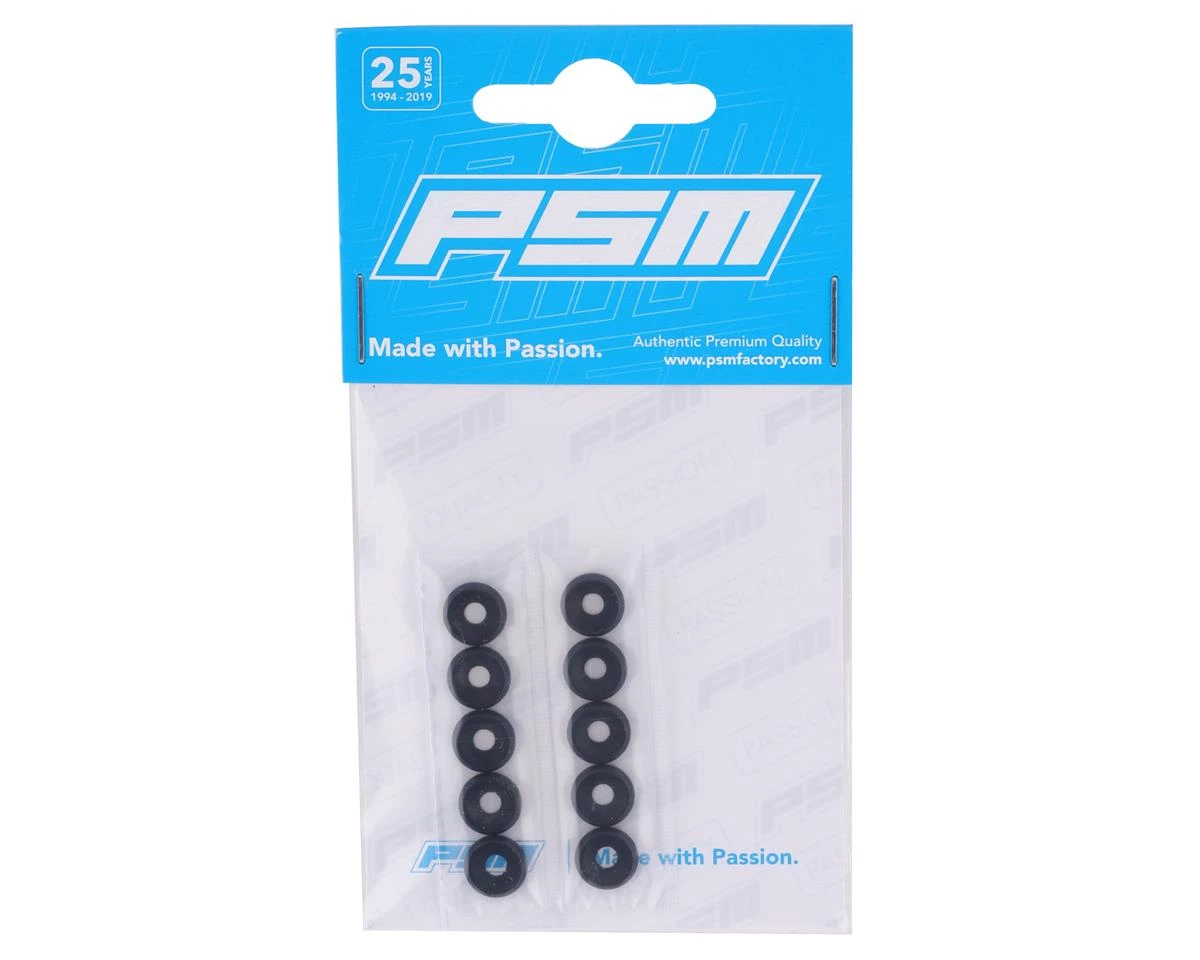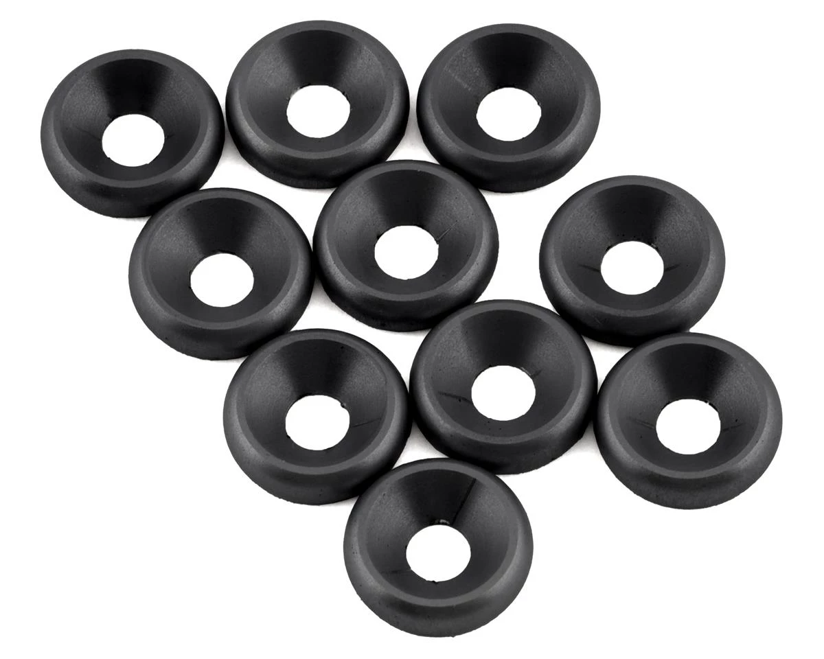 PSM 3mm Aluminum Countersunk Washers. These optional countersunk washers are a great way to add a strength and style to your RC car or truck. Designed to work with flat head machine screws (sold separately) for a strong and clean finish. Package includes ten countersunk washers.