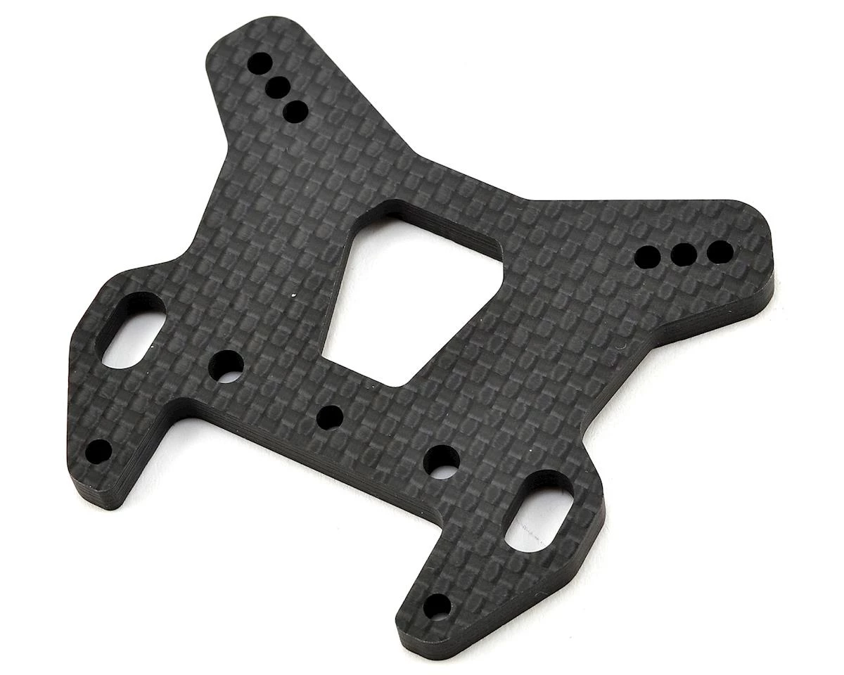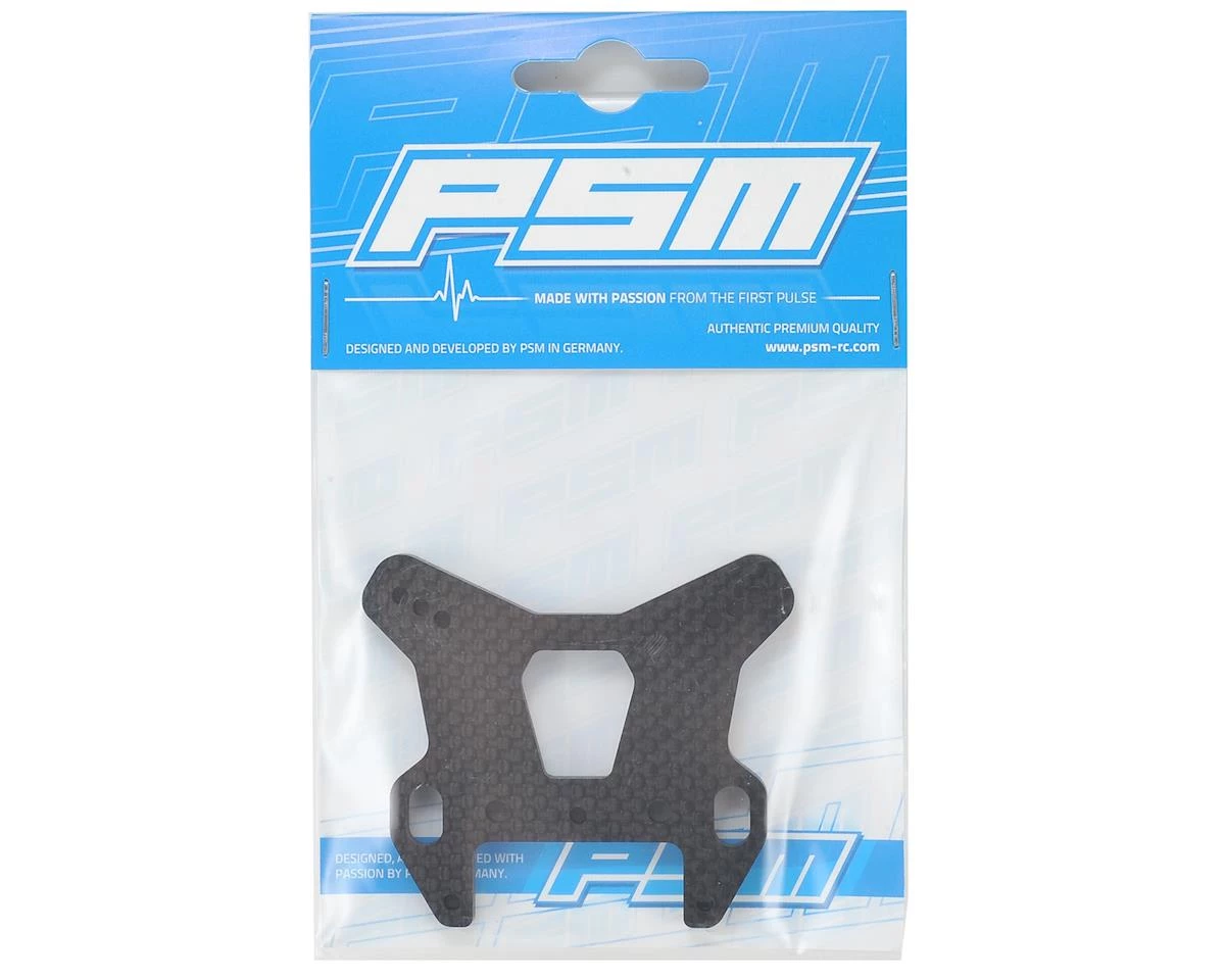 This is an optional PSM Carbon MP9 TKI4 Front Shock Tower. This tower is made from 5mm thick carbon fiber.