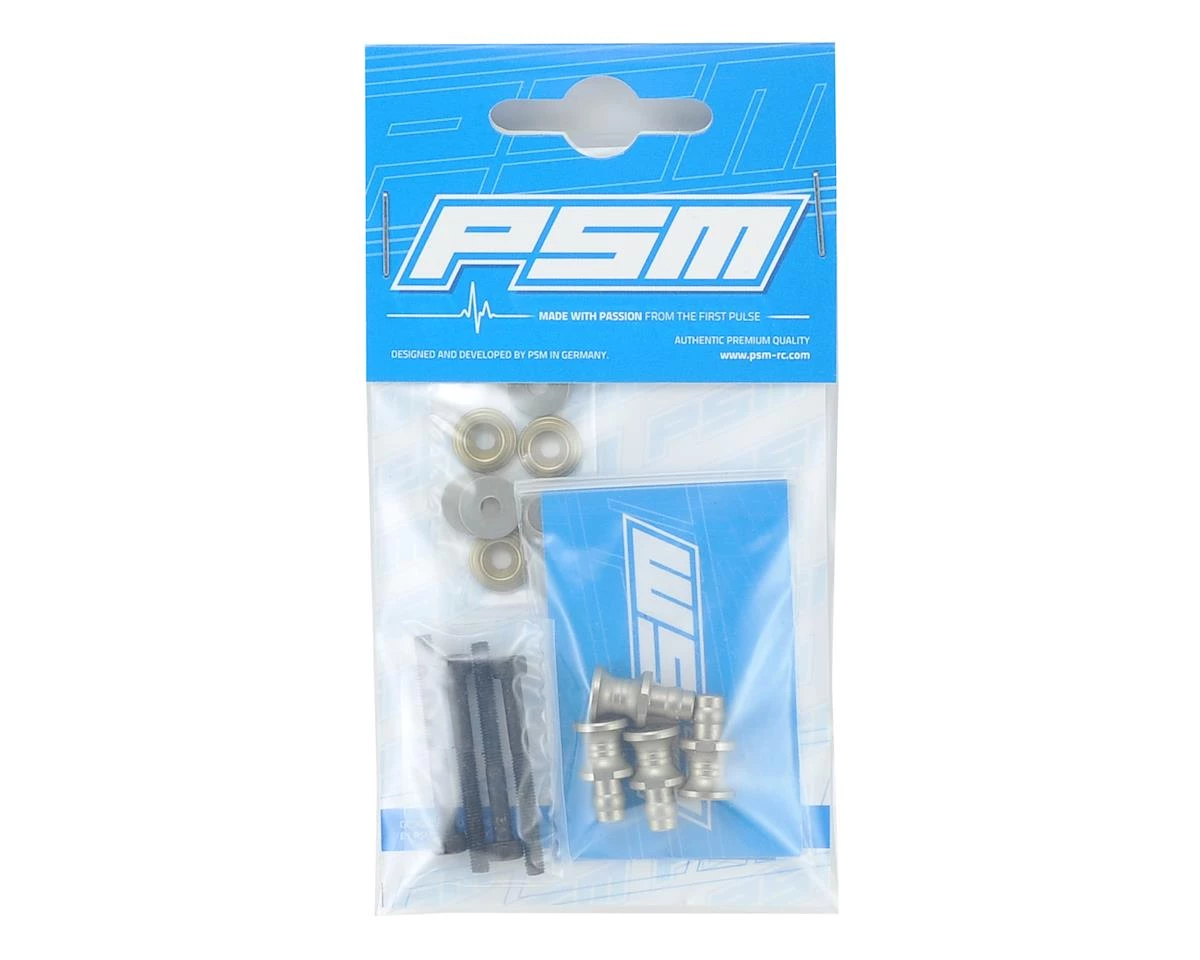 This is a pack of four optional PSM Aluminum MBX7R Shock Standoffs in Silver color. These standoffs are a made from 7075 aluminum alloy material and are a direct fit and replace the MUGE0548 standoffs. Â