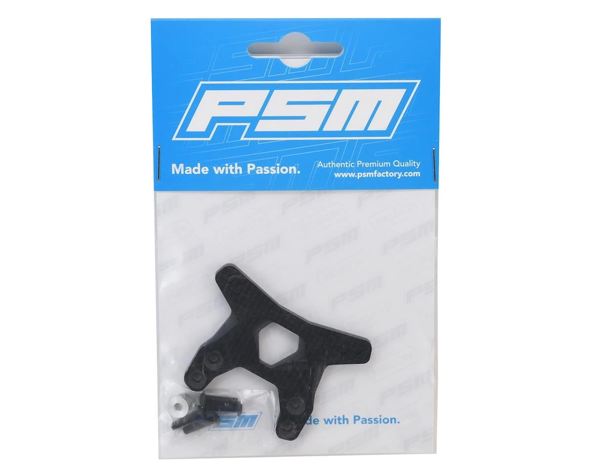 This front carbon fiber shock tower was designed as a more durable replacement for the original shock tower and will work with the Team Associated B6 (Gull Wing Arm Type). Featuring the PSM unique and authentic double stacked rib design.