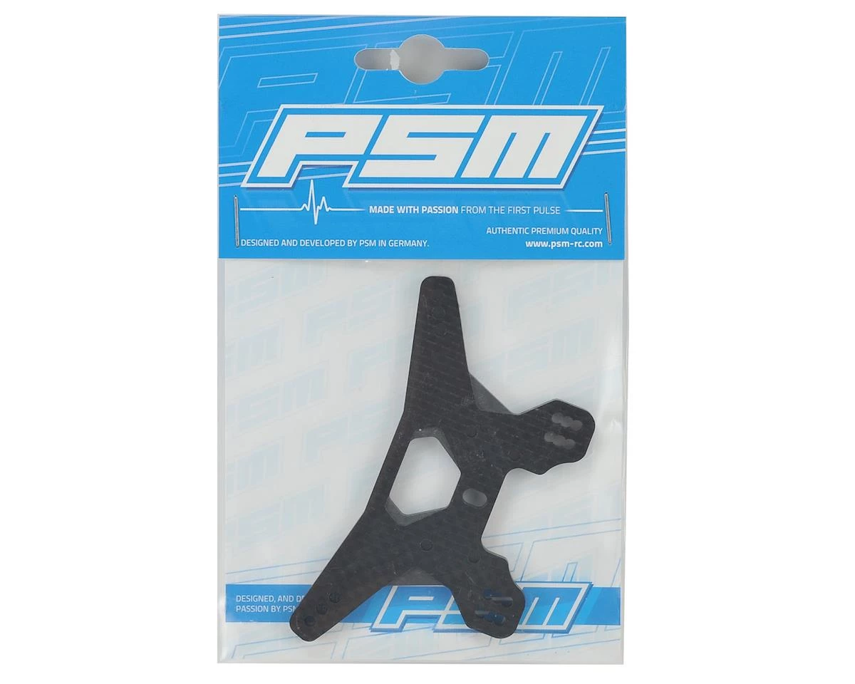 The PSM B64 / B64D 4mm Carbon Rear Shock Tower is an optional upgrade for the stock rear tower (ASC92012), and offers the benefit of increased bracing on the sides for increased strength.