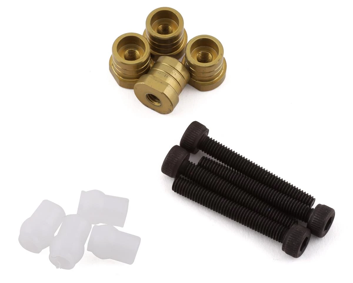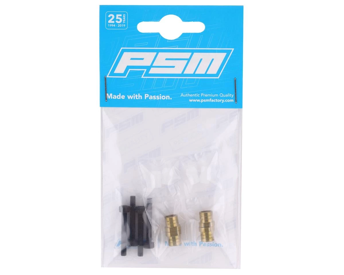 PSM B74 Aluminum Shock Standoffs with Bushings. These optional standoffs are designed to add better consistency to the shock movement on the Team Associated RC10 B74. Package includes four standoffs, four bushings and hardware.