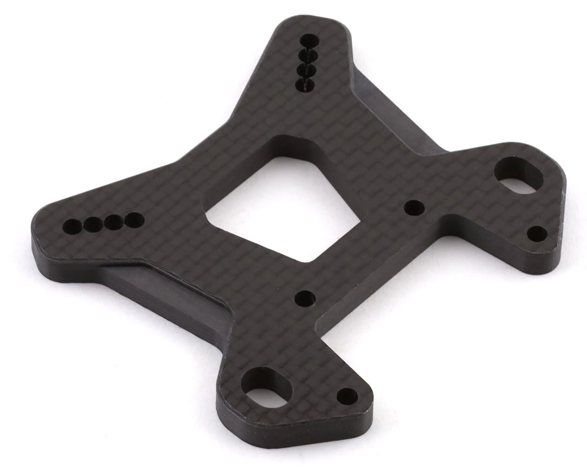 The PSM MBX8 5.0mm Carbon Front Shock Tower is a tuning option for MBX8 buggy models that features optimized geometry. The upper shock holes have been moved +0.5mm higher on the tower compared to the stock shock tower, providing an alternative setup option.Â