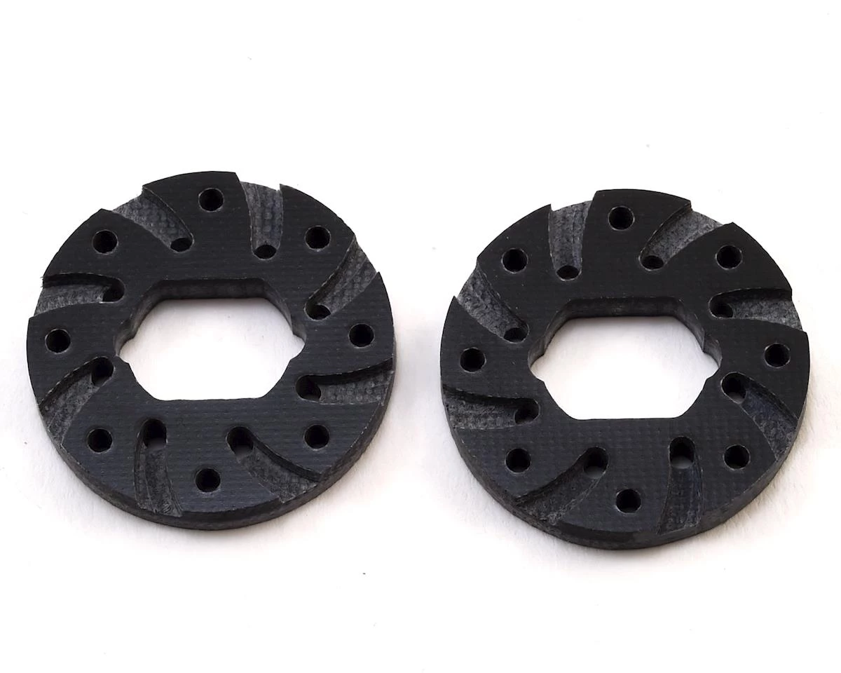 This is a pack of two optional PSM VX4 Fiberglass Brake Disc Set for use with the Mugen MBX8 and MBX7 line of vehicles. These brake discs are designed to be used without break pads and feature milled pockets for aid in ventilation.