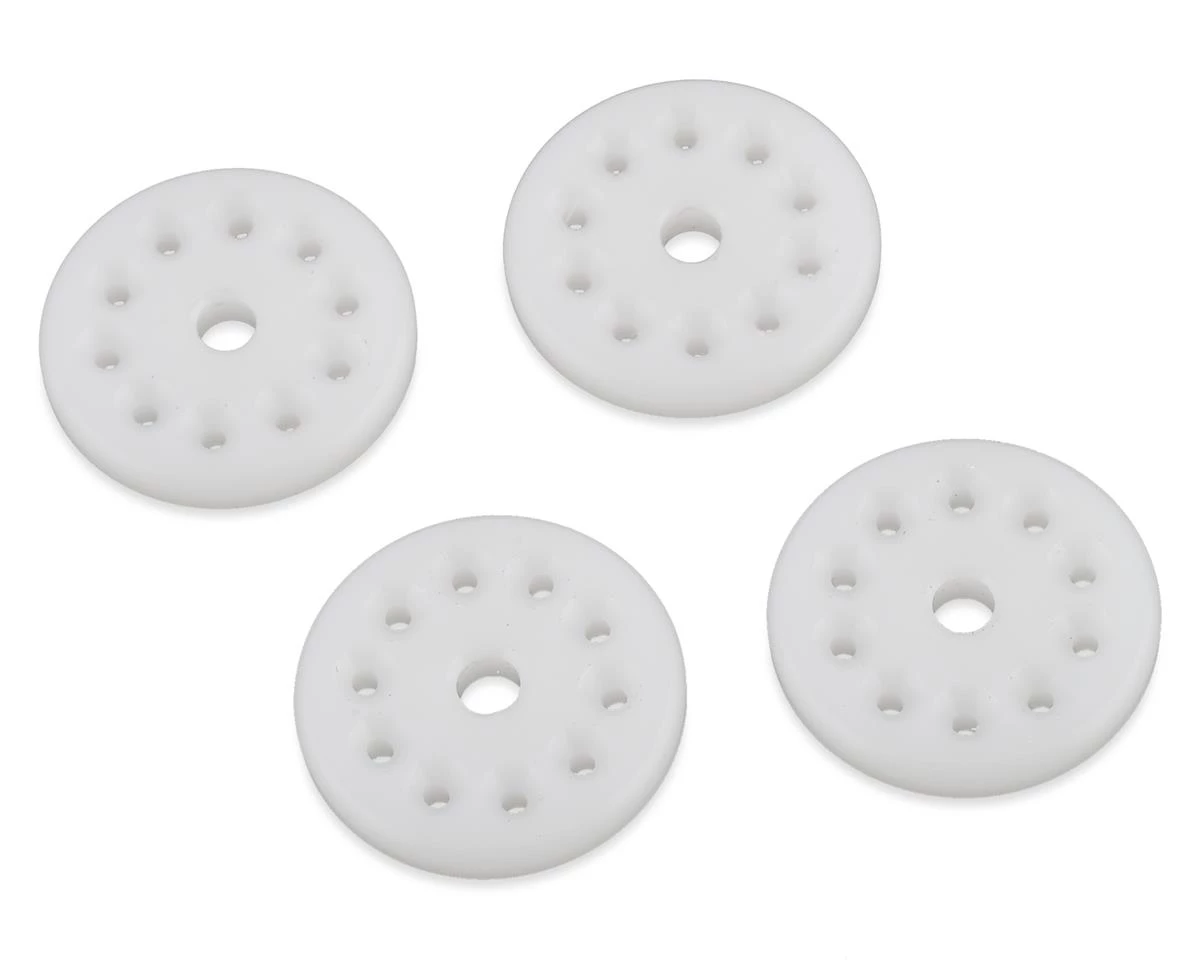This is a set of four PSM 10×1.0mm R2T1 Pro Shock Pistons, designed as an optional part for the Kyosho MP10 1/8 Kits. These pistons feature a tapered valve hole profile that can be used to adjust compression (taper up) or rebound characteristics (taper down). Plus, PSM machines these pistons with an edge-radius on both sides, helping to reduce friction on the shock body, for ultra smooth compression and rebound characteristics.Â