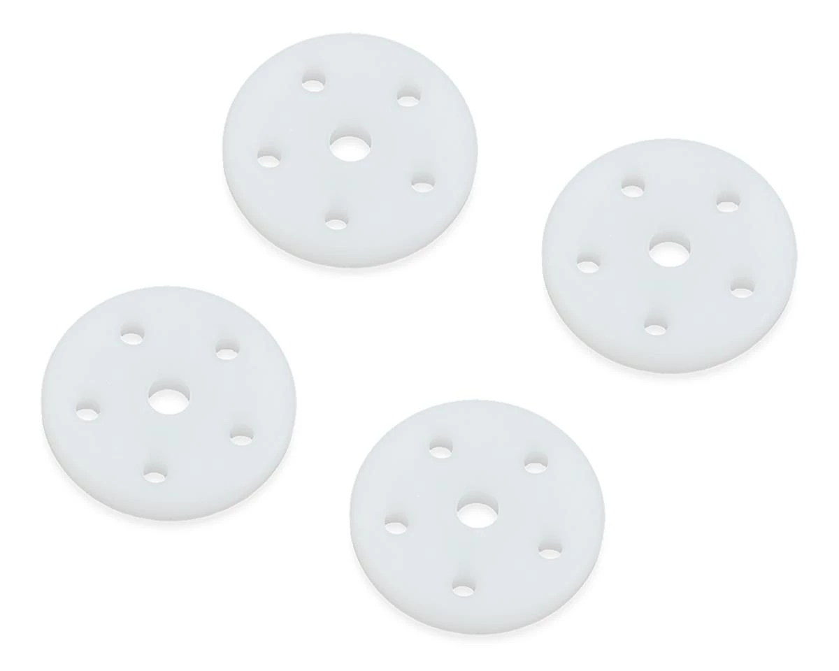 This is a pack of four PSM Pro Shock Pistons. These precision machined pro pistons feature tapered valve holes that can be used to adjust compression (taper up) or rebound characteristics (taper down). The pistons have been tuned specifically for the MP9 TKI4 line of vehicles.Â