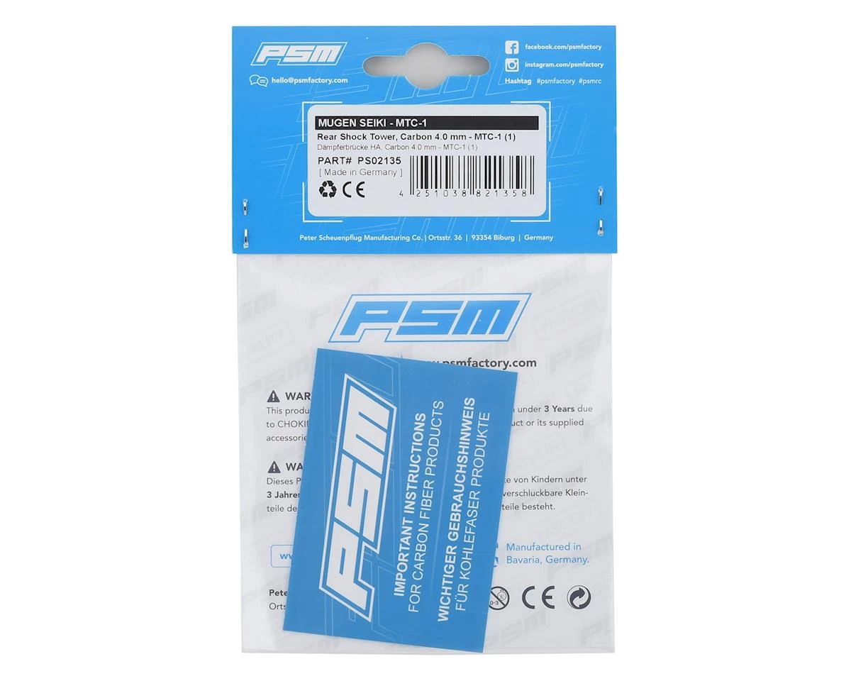 This is an optional PSM MTC-1 4.0mm Carbon Rear Shock Tower, intended for use with the Mugen Seiki MTC1 Competition 1/10 Electric Touring Car Kit and cut from quality carbon plate.