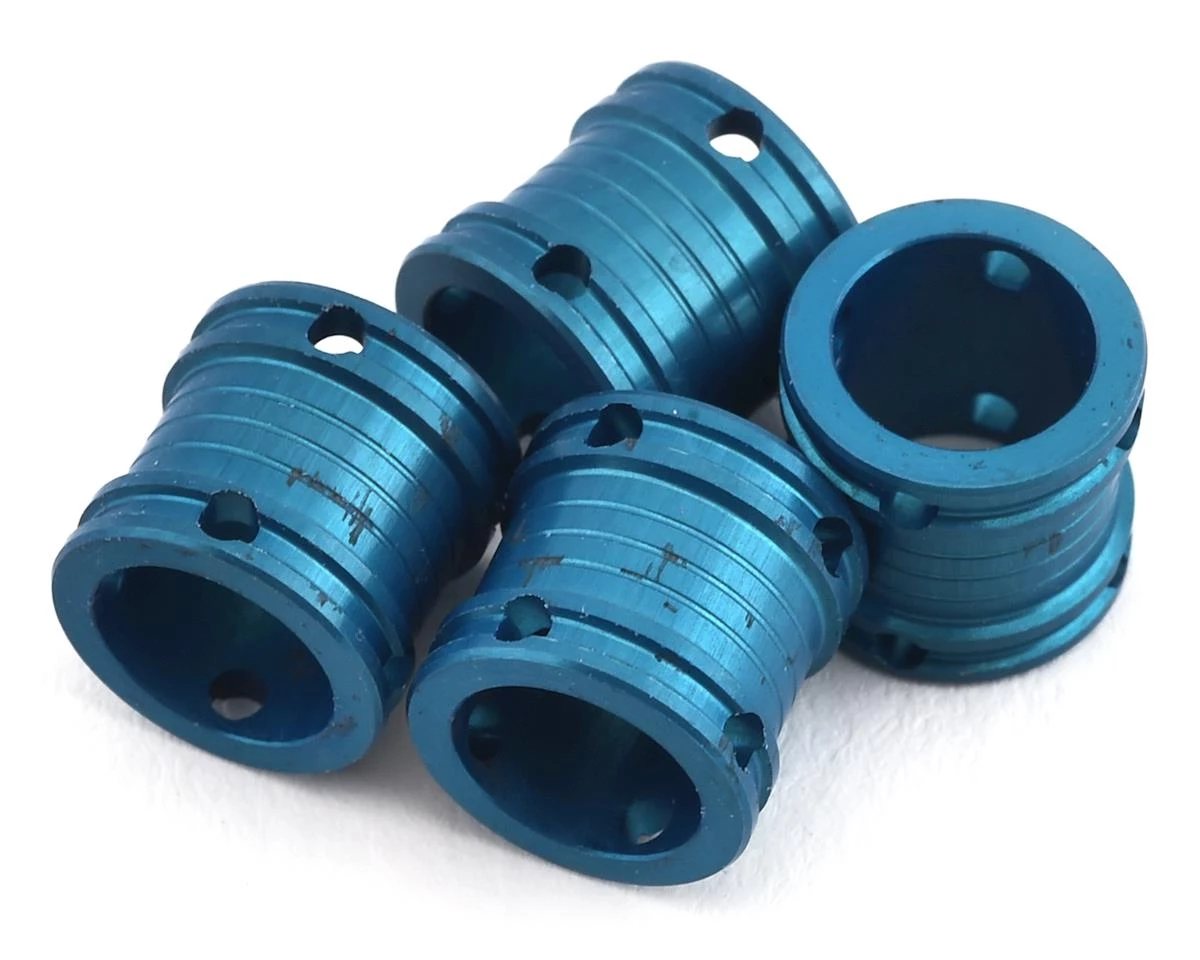 This is an optional set of four PSM Lightweight Electric Blue Aluminum DCJ Joint Cases for use with the Tamiya Double Cardan Joint Shaft Set on the Tamiya TA07. This lightweight and durable joint case was designed to reduce the rotating mass and overall weight, while maintaining great strength and wear resistance.Â